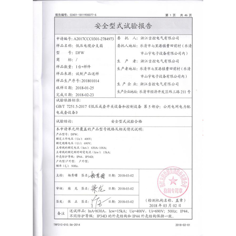 戶內(nèi)交流箱型固定式金屬封閉開關(guān)設(shè)備檢驗報告