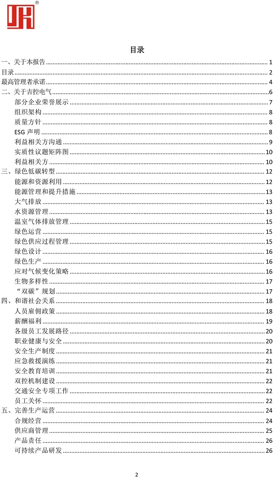 浙江吉控電氣有限公司環(huán)境、社會與公司治理(ESG)報告